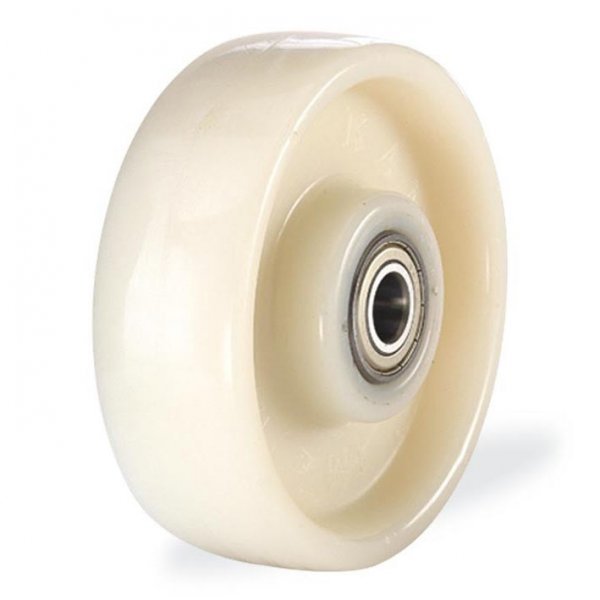 Колеса серии RPR изготовлены из большегрузного полиамида белого цвета, отлитого под давлением. В оси колеса два шариковых подшипника с распорной втулкой.
