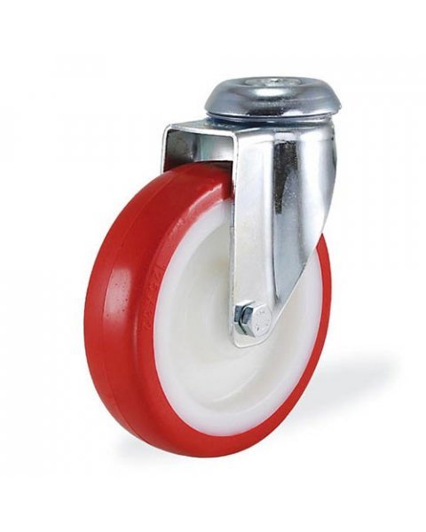Обод колеса из высококачественного полиамида природно белого цвета, контактный слой — полиуретан красного цвета, твердостью 96° Shore A. Колеса этой серии обладают большой грузоподъемностью, низким сопротивлением качению, высокой устойчивостью к воздействию множества агрессивных веществ. Также они обладают высокой механической прочностью, износоустойчивостью и низкой деформацией при длительном нахождении в неподвижном нагруженном состоянии. Рабочая температура от -30°С до +60°С.