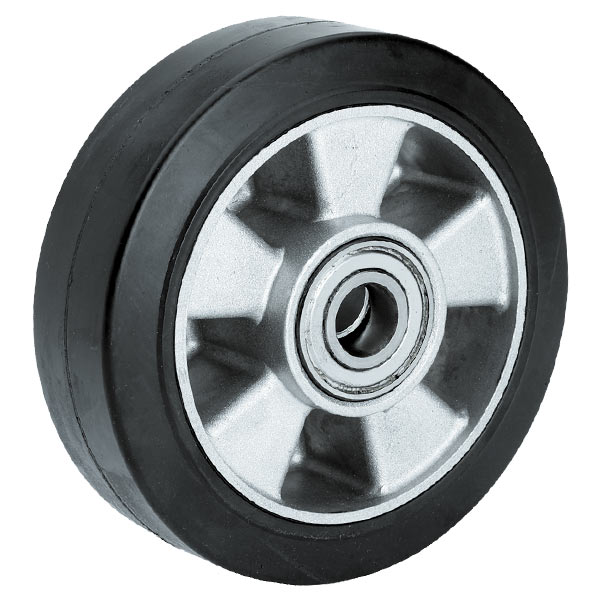Обод колеса изготовлен методом литья из сплава алюминия. Шинка — цельнолитая эластичная резина черного цвета, твердостью 70˚ Shore А. В оси колеса два прецизионных шарикоподшипника с распорной втулкой. Производство завода Alex (Испания). Рабочая температура от -30°С до +80°С.