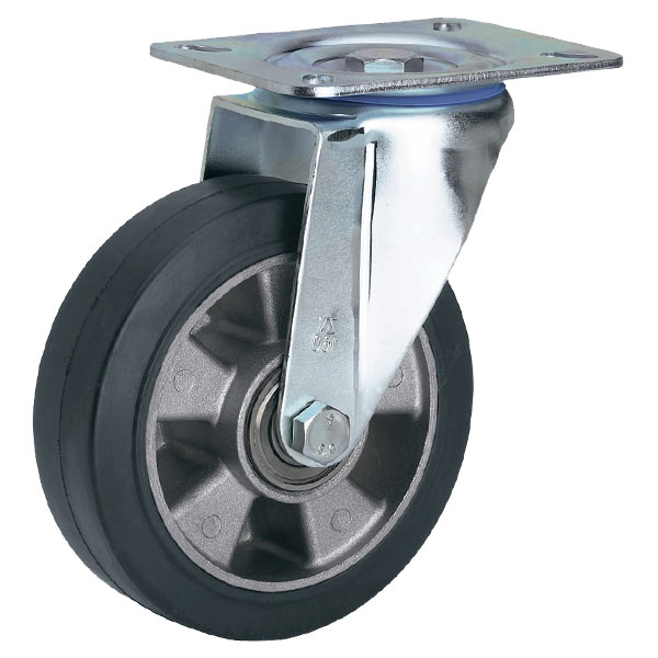 Поворотный узел на двухрядном шарикоподшипнике, спрессованным специальным методом, обеспечивающим долговечность, минимальный люфт и легкость вращения. Гальваническая оцинковка с голубой пассивацией обеспечивает надежную защиту деталям кронштейна. Обод колеса изготовлен методом литья из сплава алюминия. Шинка — цельнолитая эластичная резина черного цвета, твердостью 65˚ Shore А.