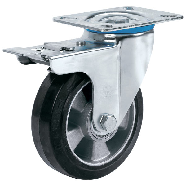 Поворотный узел на двухрядном шарикоподшипнике, спрессованным специальным методом, обеспечивающим долговечность, минимальный люфт и легкость вращения. Гальваническая оцинковка с голубой пассивацией обеспечивает надежную защиту деталям кронштейна. Обод колеса изготовлен методом литья из сплава алюминия. Шинка — цельнолитая эластичная резина черного цвета, твердостью 65˚ Shore А.