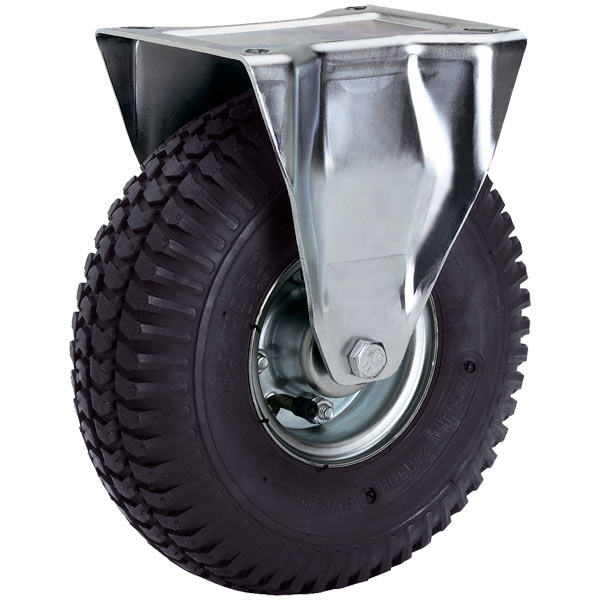 Колеса с пневматическими шинами, обеспечивающими очень хорошую амортизацию ударов и плавный ход даже на неровной поверхности. Шины имеют 4 или 6 слоев корда. Массивный обод, изготовлен методом штамповки из листовой стали, болтовое соединение. Гальванически оцинкован с голубой пассивацией. В оси колеса шариковый подшипник. Рабочая температура от -25°С до +60°С. Производство завода ALEX (Испания).