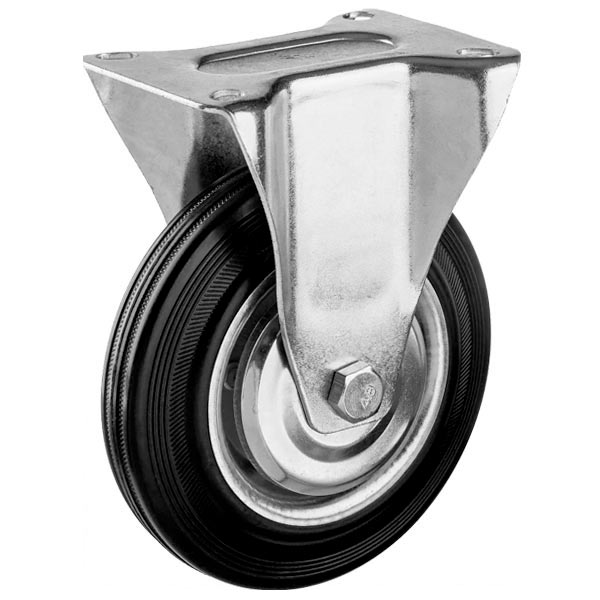 Колесные опоры серии С-SLS с платформенным креплением. Шинка — полуэластичная черная резина, обод из листовой стали с двух сторон закрыт защитными колпачками. В оси колеса роликовый подшипник. Поворотный узел с двухрядным шарикоподшипником. Стальной тормоз фиксирует поворот колеса и поворотный узел. Рабочая температура от -25°С до +50°С