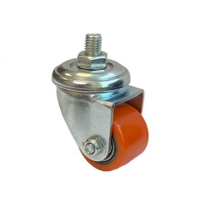 Кронштейн изготовлен из листовой стали, поворотоный узел с двухрядным шарикоподшипником. Крепление под один центральный болт. Обод колеса отлит из чугуна, контактный слой — полиуретан, жесткостью 92°Shore A светло-коричневого цвета. В оси два запресованных шарикоподшипника. Рабочая температура от -35°С до +70°С.