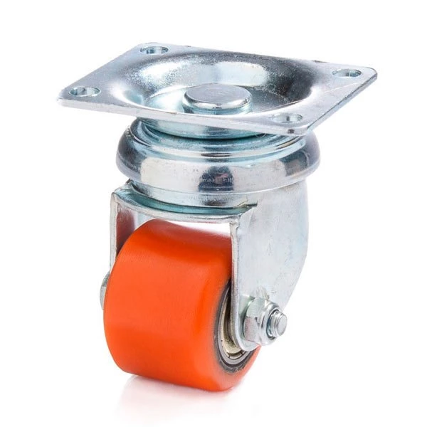 Кронштейн изготовлен из листовой стали, поворотоный узел с двухрядным шарикоподшипником. Крепление площадка под четыре болта. Обод колеса отлит из чугуна, контактный слой — полиуретан, жесткостью 92°Shore A светло-коричневого цвета. В оси два запресованных шарикоподшипника. Рабочая температура от -35°С до +70°С.