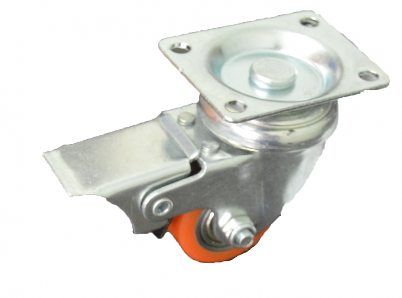 Кронштейн изготовлен из листовой стали, поворотоный узел с двухрядным шарикоподшипником. Крепление площадка под четыре болта. Обод колеса отлит из чугуна, контактный слой — полиуретан, жесткостью 92°Shore A светло-коричневого цвета. В оси два запресованных шарикоподшипника. Рабочая температура от -35°С до +70°С.