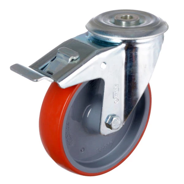 Колесо отлито из полиамида, контактный слой — полиуретан красного цвета, твердость 95˚±2 Shore A. Профиль шинки закругленный. Колеса