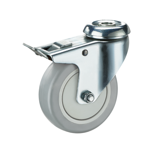 Колесо аппаратное серая резина под болт с тормозом 125мм отверстие М12 ПК усиленный 6757125