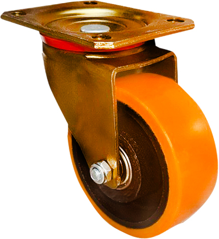 Колесо большегрузное желтый полиуретан черный обод, поворотное, 80мм 4543080