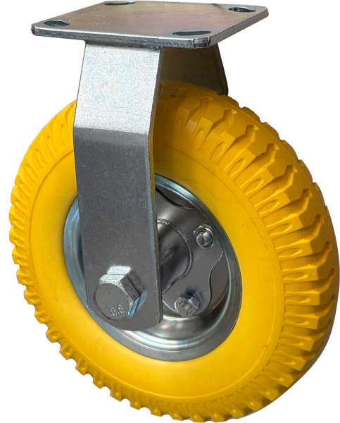 Колеса для малой техники и промышленной мебели, в том числе Пневматические колеса, принимают на себя основную нагрузку, поэтому подвержены сильному износу. Поэтому и меняются они чаще всего. Мы поможем быстро решить проблему, чтобы исключить длительный простой. Колесо литое С НЕПОВОРОТНОЙ ОПОРОЙ 250мм (3.50-4) FC100(20)-PU — модель с большим запасом прочности, выдерживающая 170 кг за счет продуманной конструкции и современных материалов. Она отлично показывает себя на разных покрытиях, обеспечивает маневренность и не издает много шума. Операция по замене очень проста и занимает мало времени.