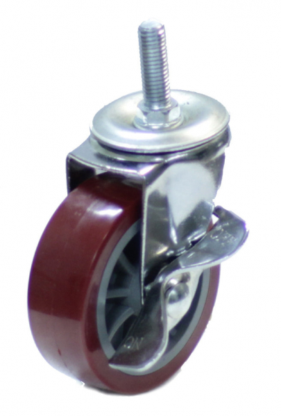 Колесо мебел. поворотное болт.крепление_(М 8) с тормозом 40мм (красный пластик)