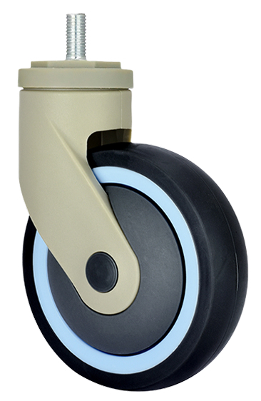 Полипропиленовый обод колеса с термопластичной резиновой шинкой серого цвета, твердость 85±3° Shore A, не оставляет следов на полу. Соединение обода колеса с шинкой посредством химической и механической связи надежное и долговечное.