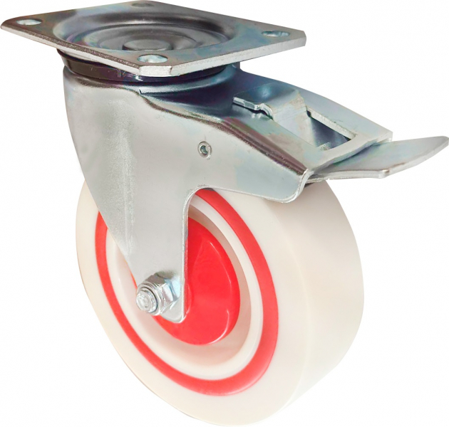 Колесо полипропиленовое поворотное с тормозом с термопластичной резиновой вставкой 100мм (Сэндвич колеса) 2023100